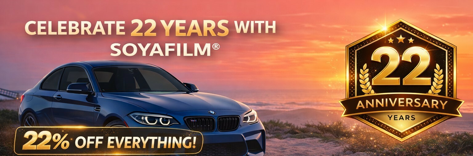 SOYAFILM® - Superhelppo sävy autollesi.Maailman helpoin aurinkofilmi autollesi!SOYAFILM® = 22years = 22% DISCOUNT!alkaen 303 NOK(Tavallinen hinta : 388 NOK)